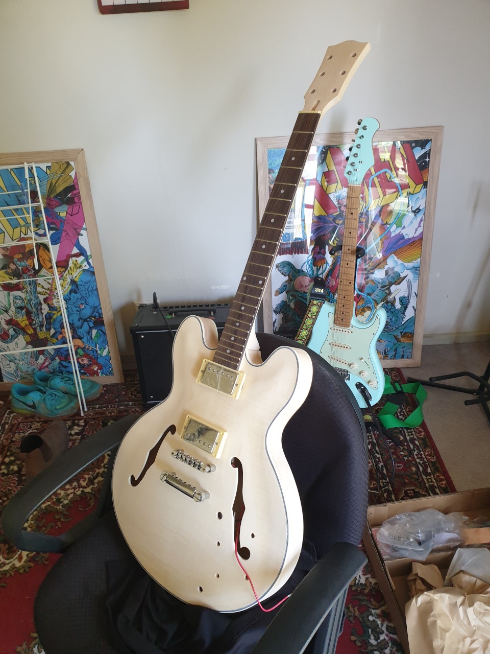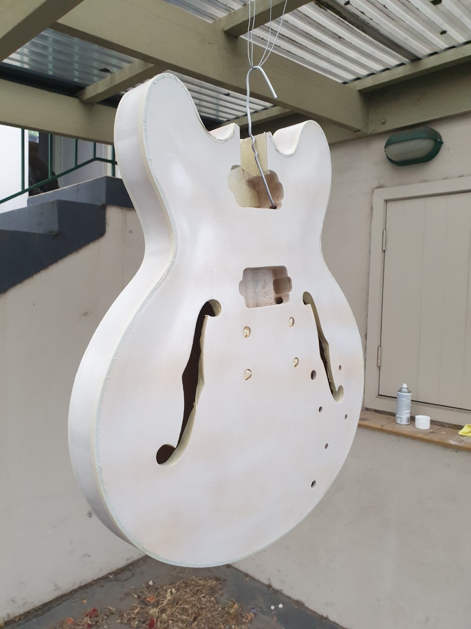 The neck has finally cured enough that I can handle it. It'll probably still need a couple of month before its completely hard and I am able to wet sand and polish which I hope will bring it to life a bit more as there's a couple of dull spots.