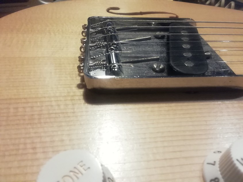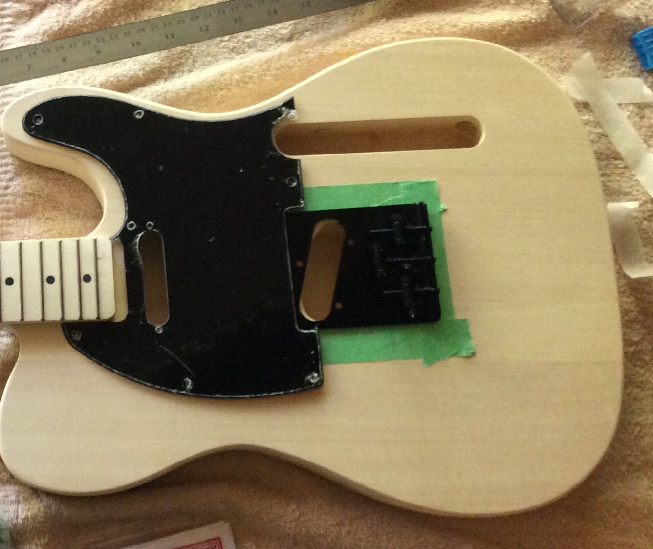 My kit has a scale length of 648mm and I have positioned the saddles in the middle of their adjustment range and lined it up with this length. In spite of this I find that the pick guard will not fit and I will have to make the bridge pickup cavity bigger as seen in the photo below. Have I done the right thing or should the bridge sit differently?