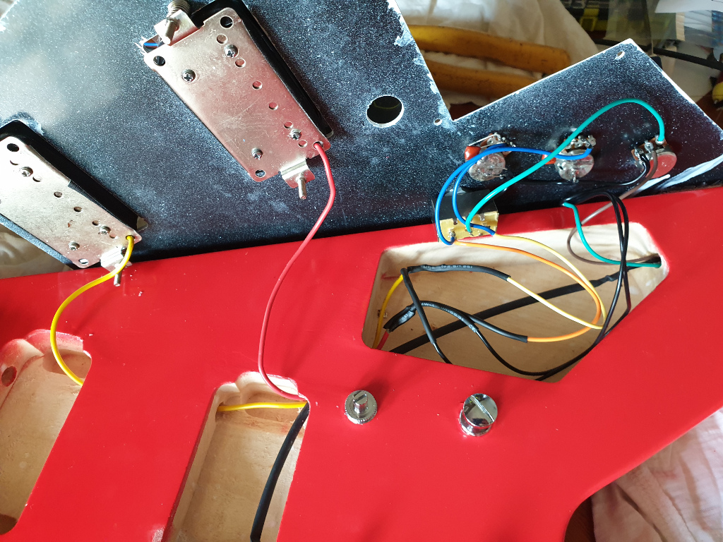 I got my FV-1 kist a few months back and have finally finished the painting etc, so I decided that today was a good day to sit down and wire it up. Went looking for a wiring diagram and can't seem to find the correct one. This kit has two humbuckers, 1 volume and 2 tone pots and a 3-way switch. I can see wiring diagrams for 2H, 2V, 2T and 3-way switch, 2H, 2 Pots and a 3-way switch, but can't find anything that matches this kit. Anyone know where I might find something? Was hoping to have this all ready to go today. I know I should have looked into this when I got the kit months ago but I don't think that far ahead :-p
