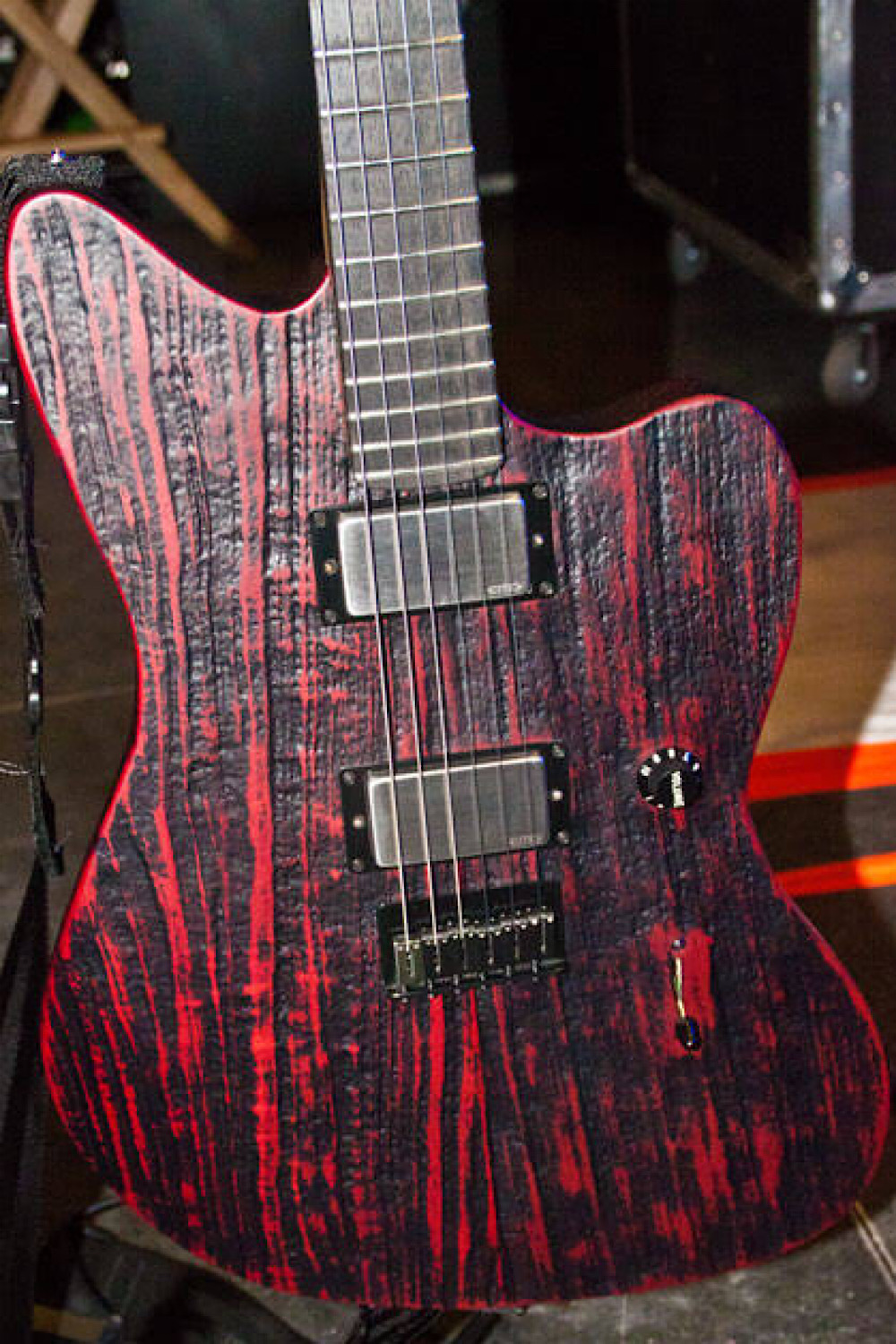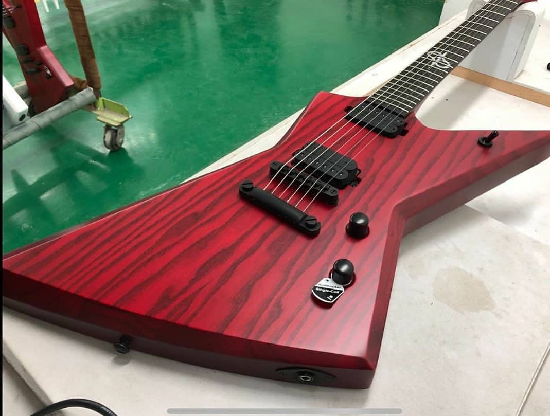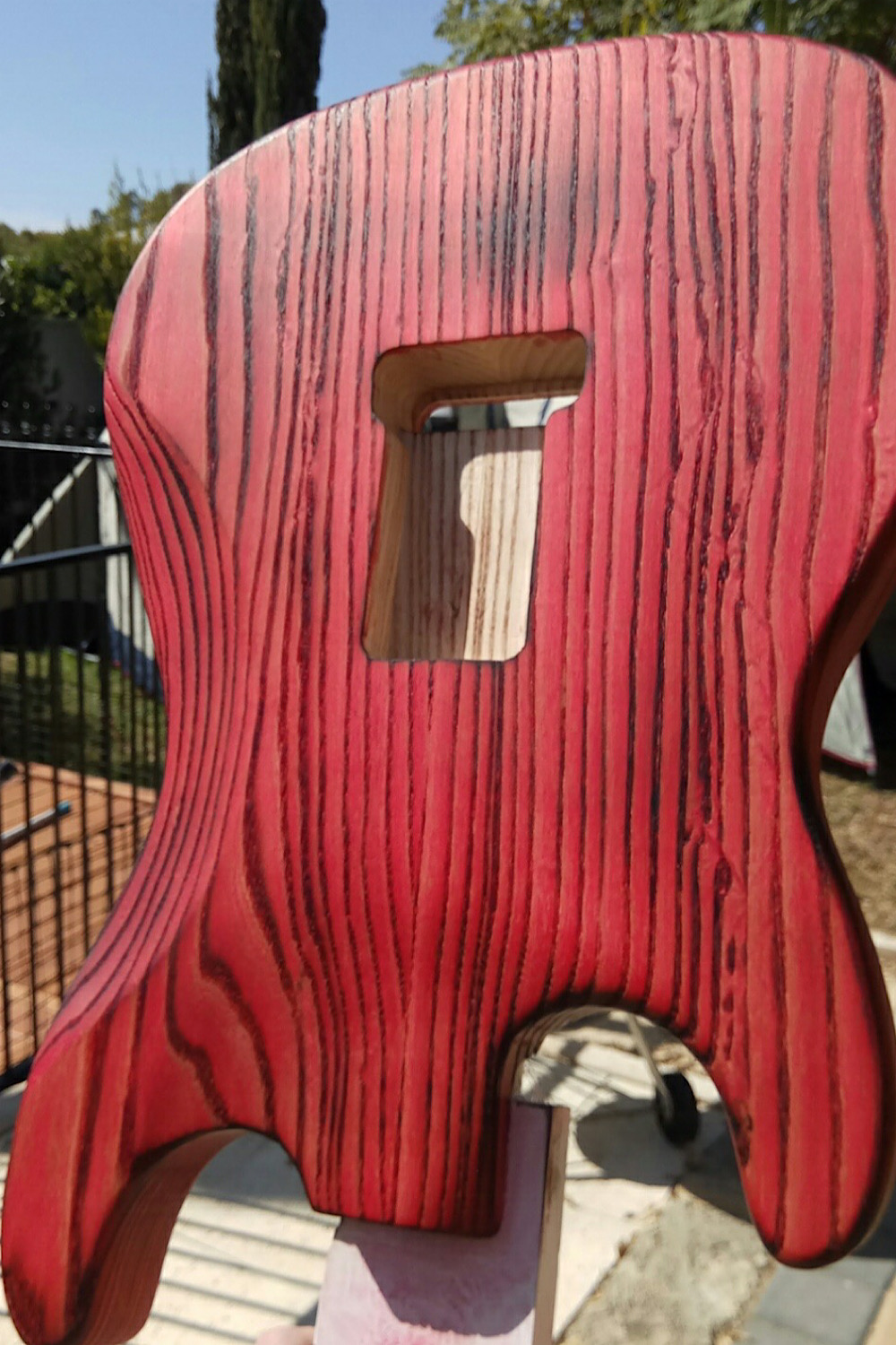 My plan with this one is to have a finish similar to the below guitar. I’m going to use the Shou Sugi Ban method to darken the grain and Karijini red dingotone to get the red look.