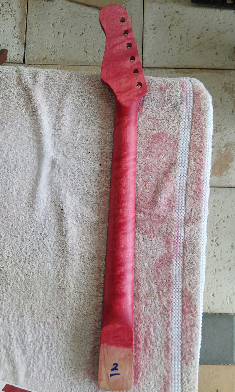 Tomorrow is onto staining with some karrijini red dingotone. Contemplating staining the face of the headstock to match, thoughts?