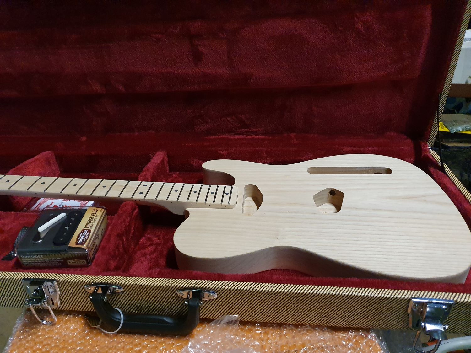 I think everyone is having a similar idea in lockdown and I'm slow off the mark - but managed to get the only available straight Telecaster kit variant left on PBG. Ash body and maple neck, with a set of Vintage Plus Toneriders on the way.