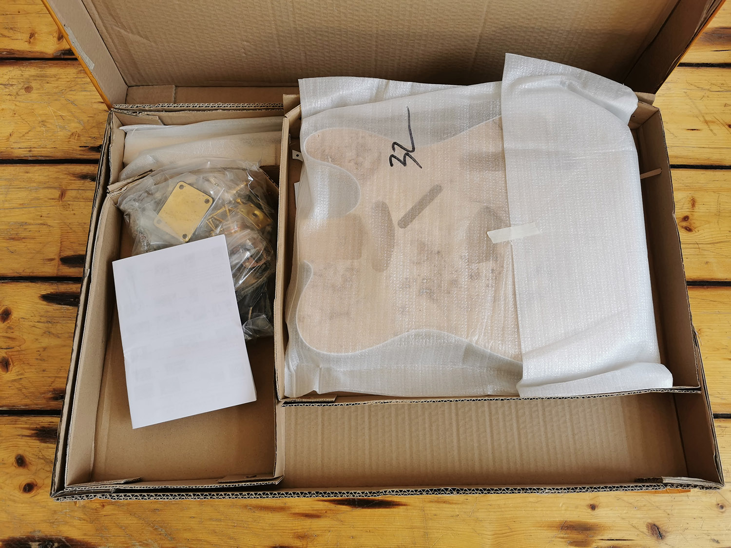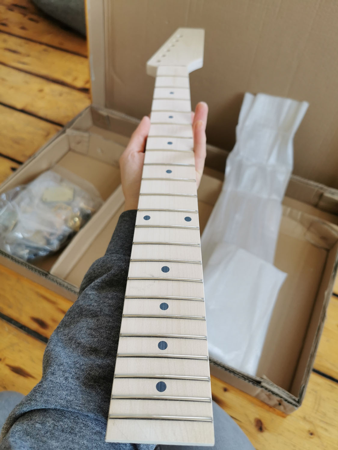 Also, I'm not a fan of fretboards with trapeze inlays (that reduces the choice of kit dramatically ;-) ), and I thought the gold hardware that came with the telecaster is something different. So, for 100€ incl. shipping, I took the risk and ordered the kit.