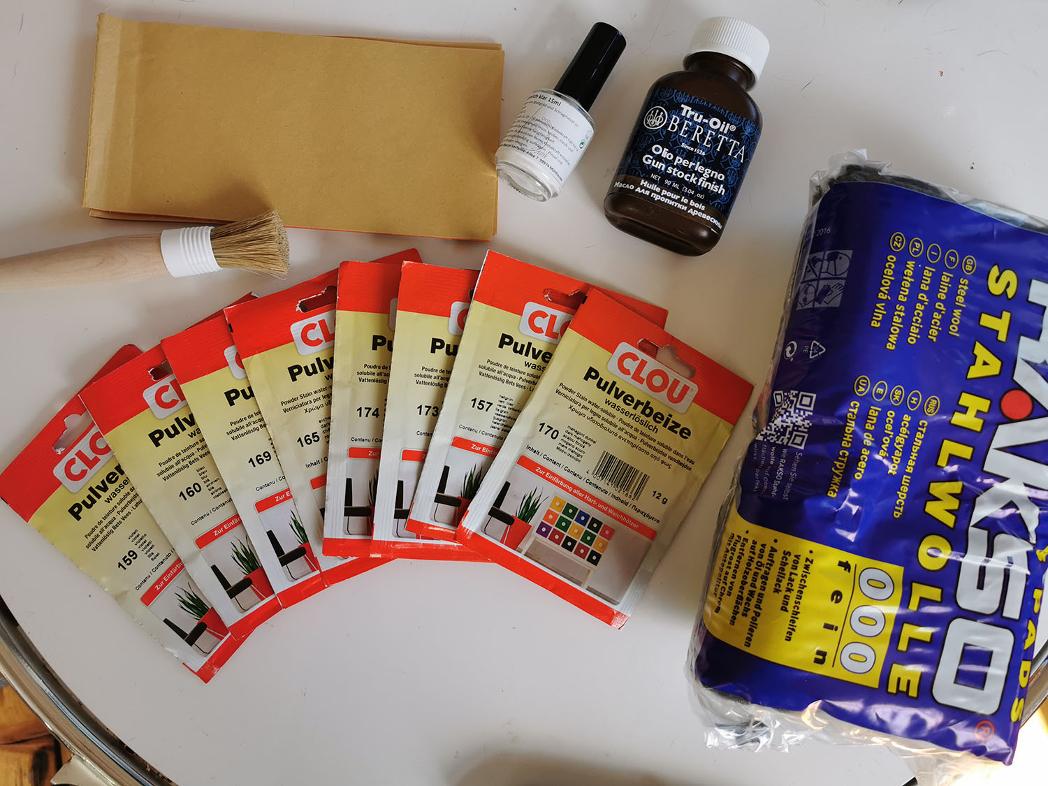 I also got a bunch of wood stains and wood filler. I'm not really sure what I want to do with this guitar in regards to staining, I hoped to leave the top alone (just do the copper fills) and then grain fill the back and neck (?) and then just use tru oil as a finish.