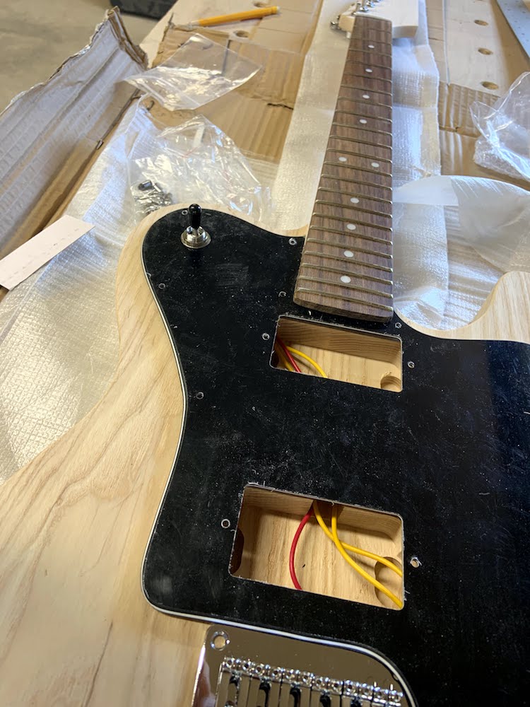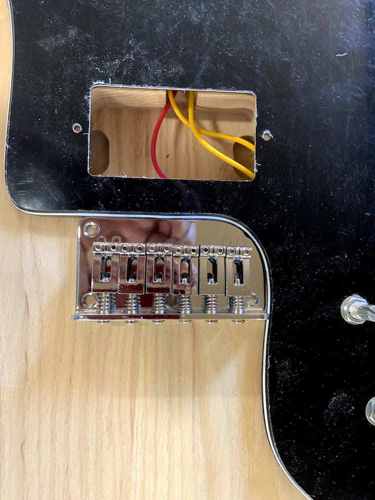 My first observation on doing a dry fit is that with the neck, scratch plate (pick guard) and bridge in place, there is significant interference (see pic). I'd appreciate any constructive suggestions. TIA