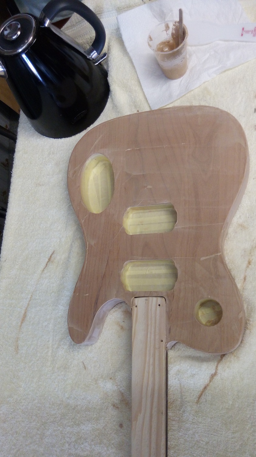 So moving to the body. My plan was a natural finish, but I still wanted to end up with a decent gloss finish. I decided to fill the grain and then use a wipe on poly approach. Again inspired partly by this youtube video.