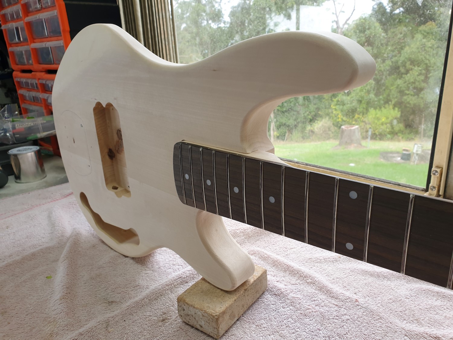 Today I have fitted the neck and bridge, aligning the bridge with craft string. The pickup has also been test fitted. Next the frets will be sorted and the fret ends beveled. All is going well so far!Attachment 36041Attachment 36042