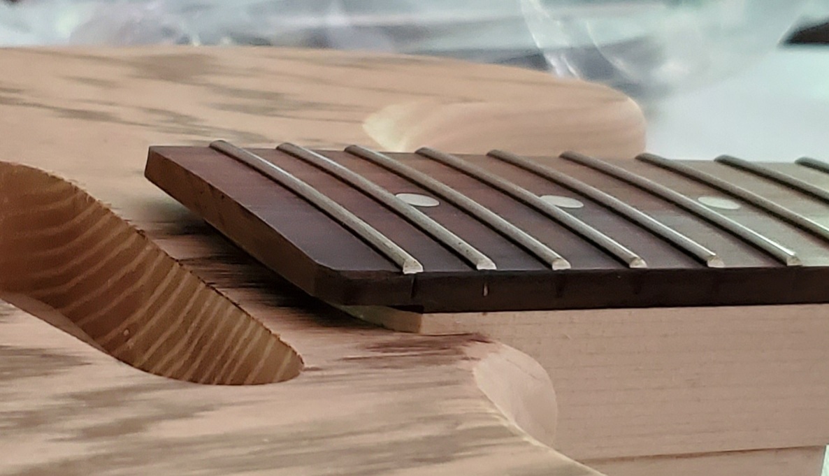 Hello all- I'm new here, and new to building from a kit. I did a dry fit and took this pic. Seems like the fretboard is high, but I don't really know. Is this normal?