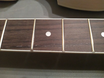 Then near the 3rd fret there are some white lines along the fretboard. I think I've read that it can just be touched up with a pen, but just double checking.