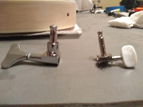 The question I have is on the tuners. I like the pearloid on the vintage tuners, but they are way smaller than the ones that came with the kit, the tuner post measures around .25in/6.1mm vs the kit tuners at .5in/13.4mm at the base and the post is .32in/8.3mm. I'm a little worried about the posts holding up against the string tension, but assuming they will work, I was hoping for advice if my plan sounds like a correct approach: