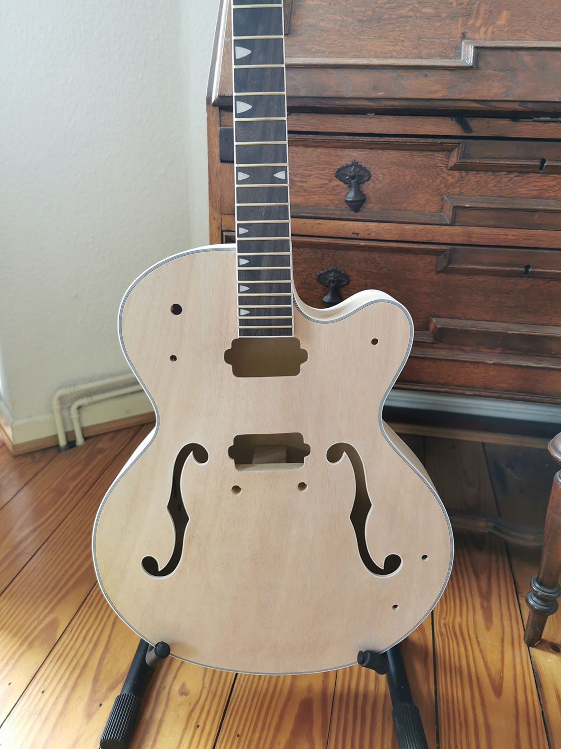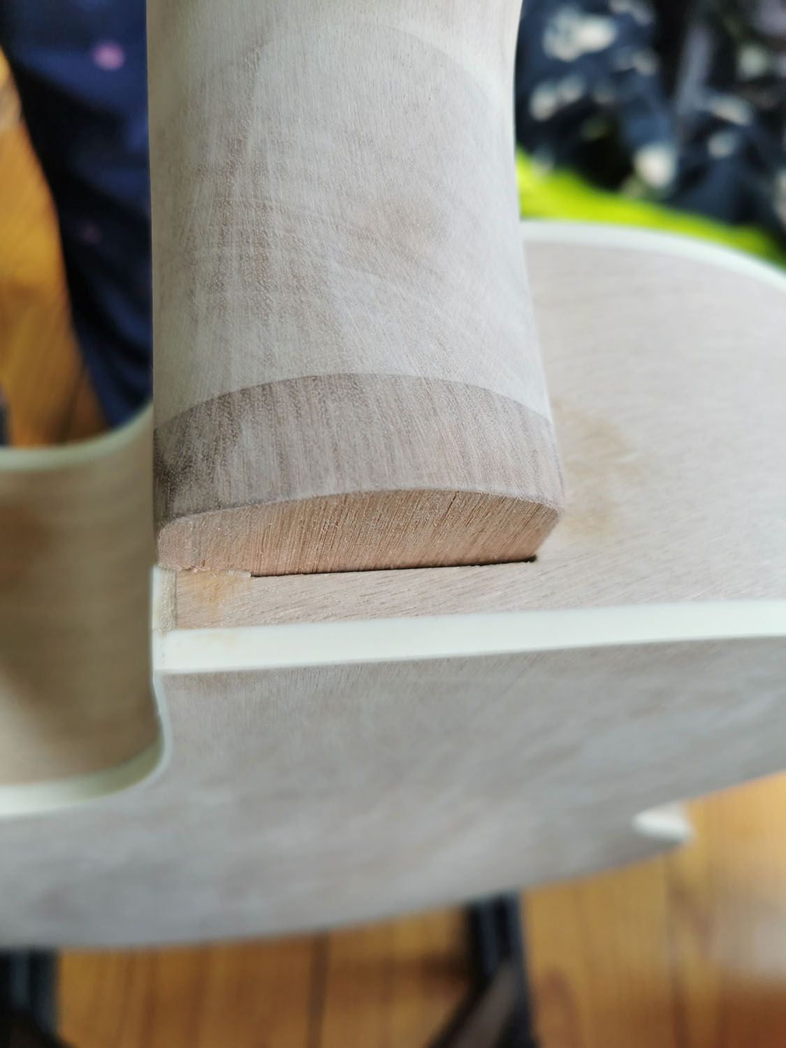 The only tiny "problem" is that I didn't dare to glue the neck yet, as I have no idea how much pressure I can apply to the body while clamping the neck. It is so light, I'm scared to just squish it. I peeked inside and I THINK the neck sits firmly in a big block of wood, so it should take some pressure, but I still need to convince myself it's gonna be okay :D