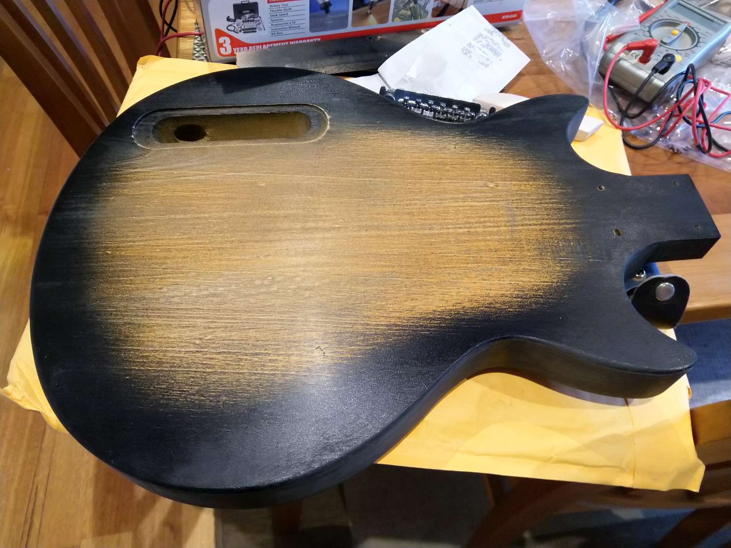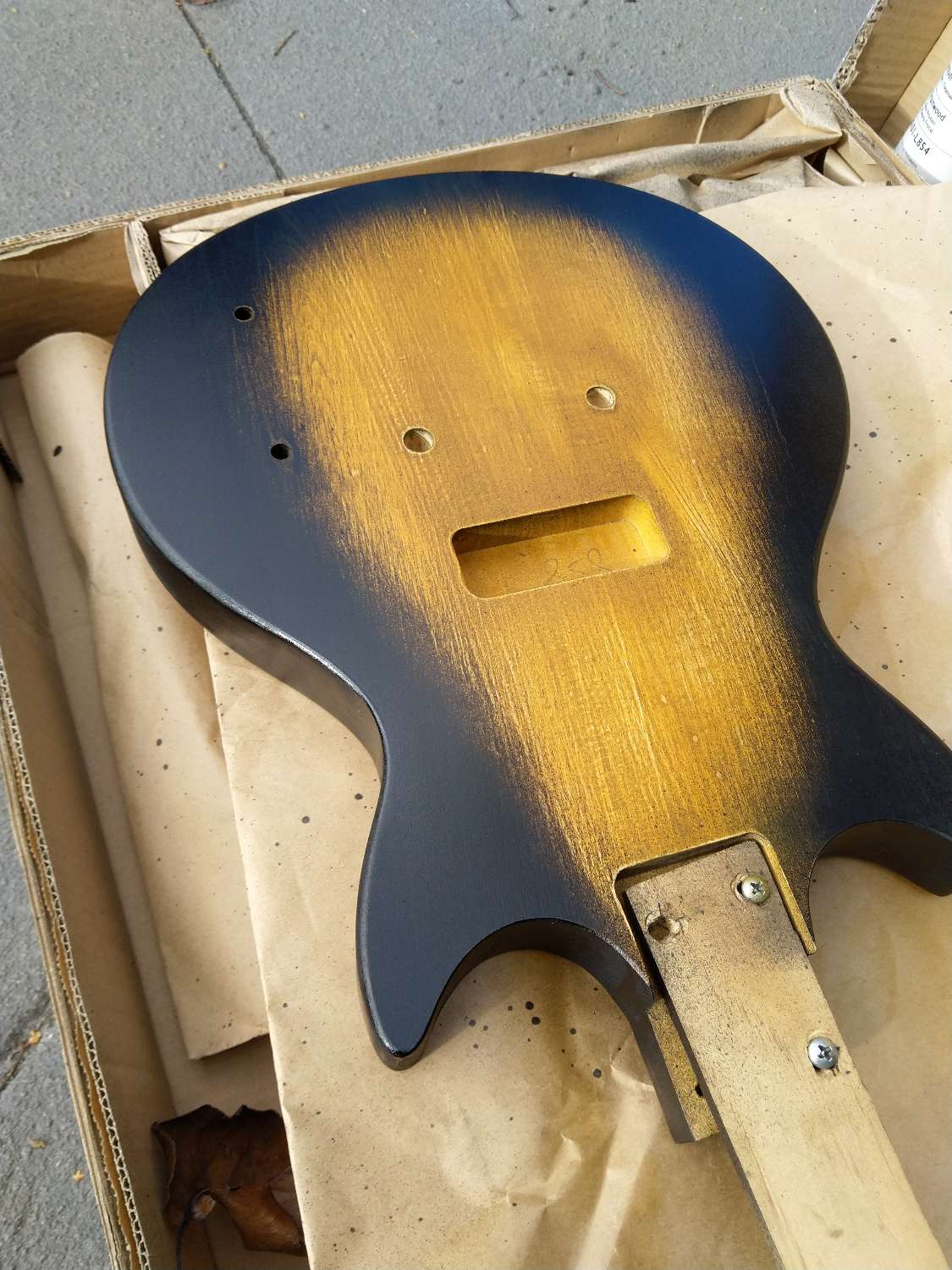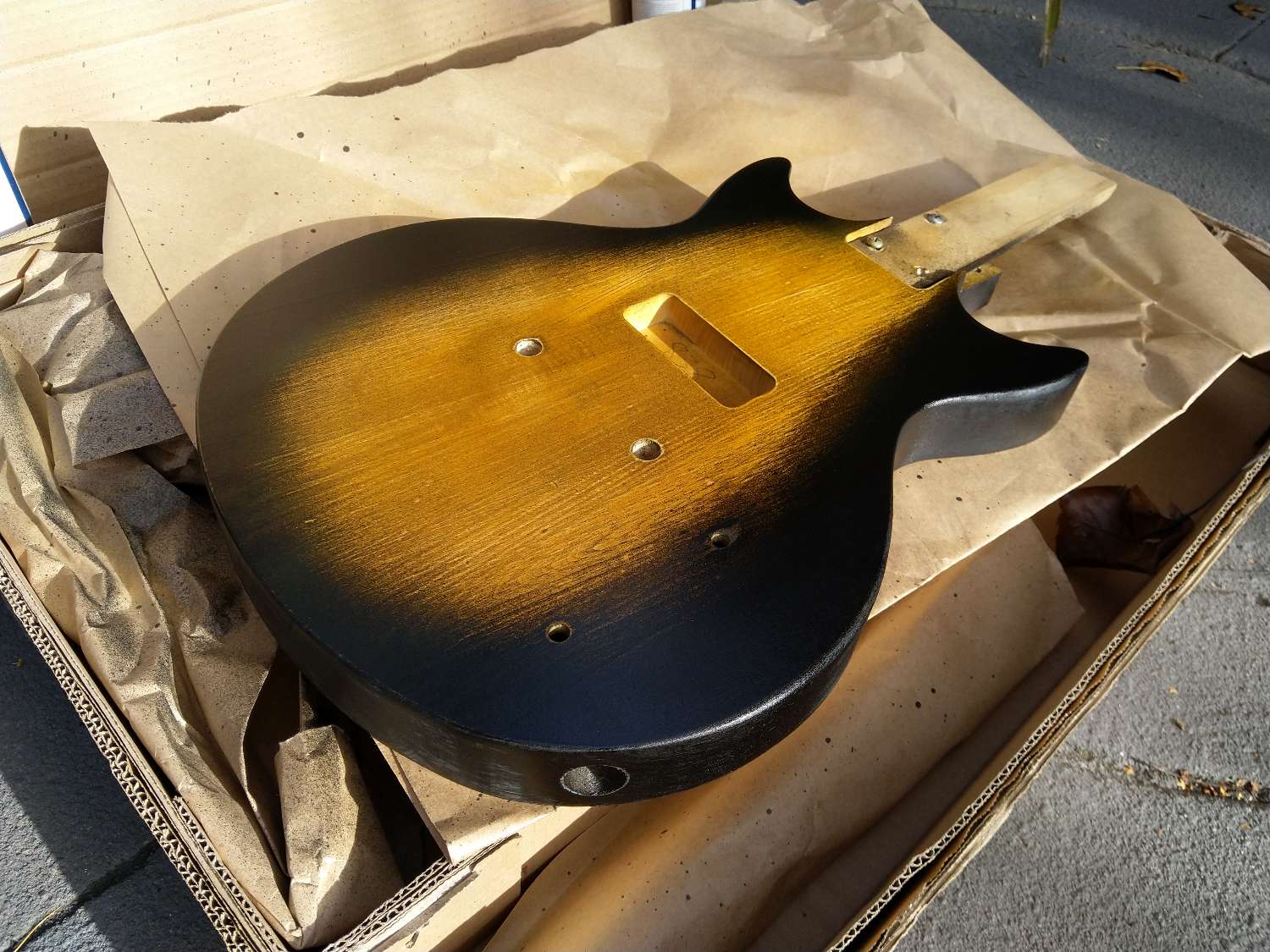 This one's going to be bumblebee burst. Nice tight neck pocket. The P90 in this kit is 7.8kohm. it's getting alnico magnets.