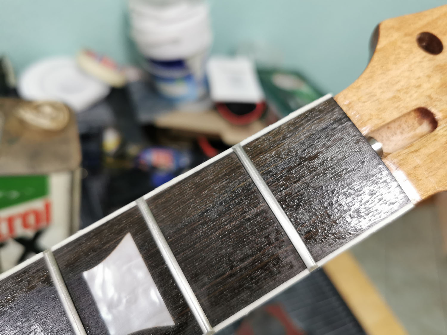 "Fake" wood fretboard