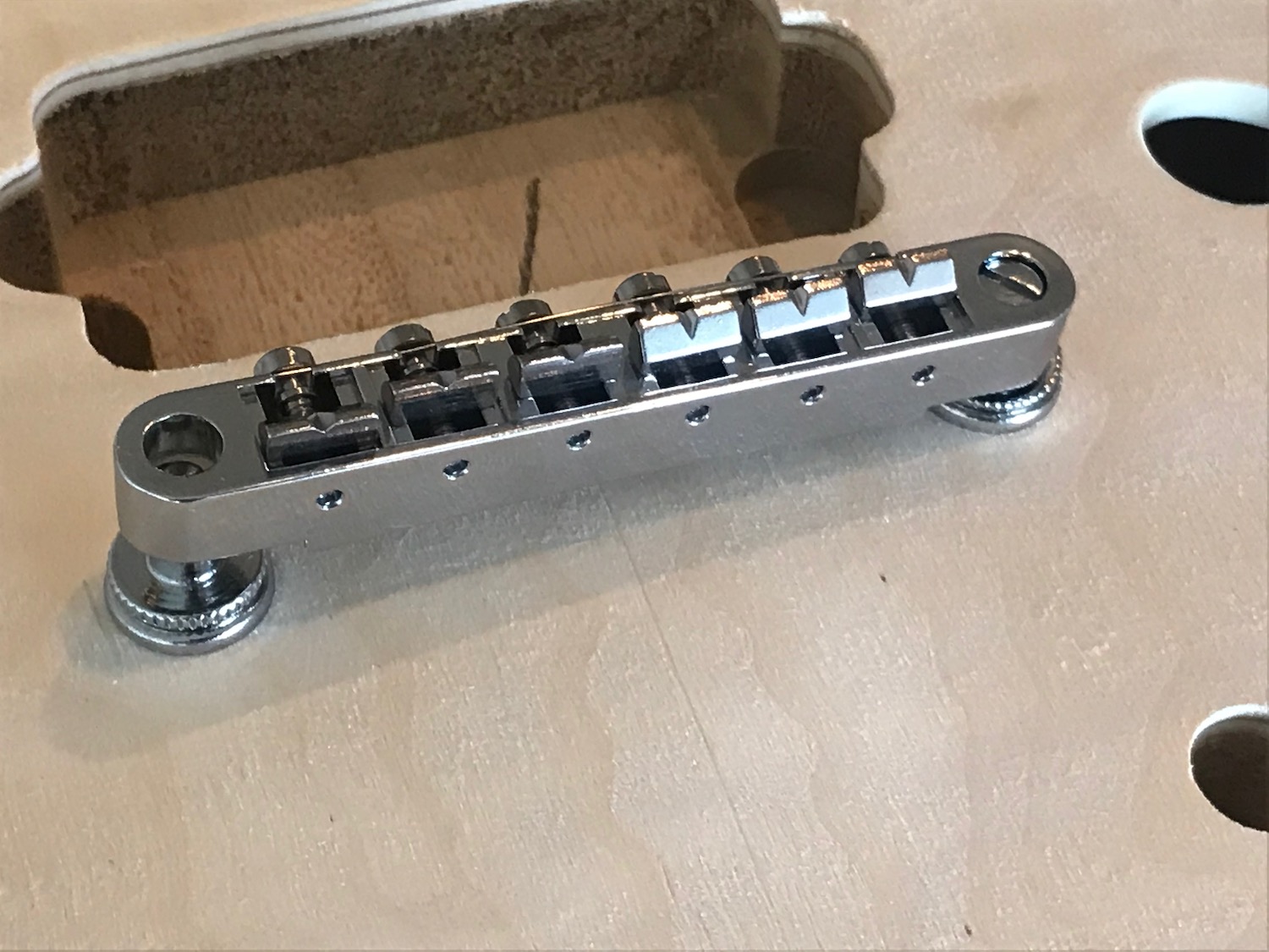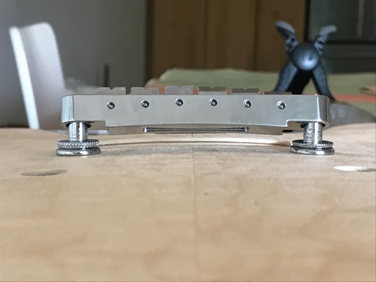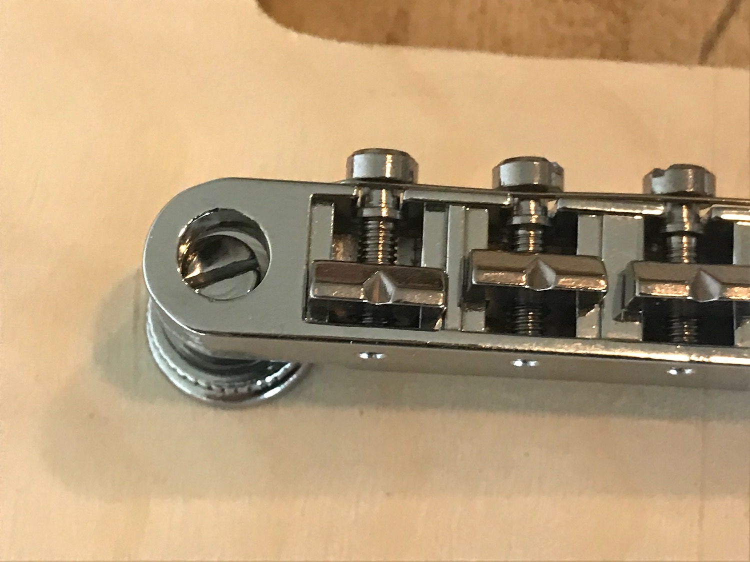 Hi guys! I'm putting together my ES-1Q kit from Pitbull Guitars and just ran into an issue with the tune-o-matic bridge installation. It seems that the bridge posts are not quite parallel to each other. They only point very slightly away from each other, but it's enough so that the bridge itself doesn't fit on them (even with some elbow grease). I've attached some pictures that show the issue.