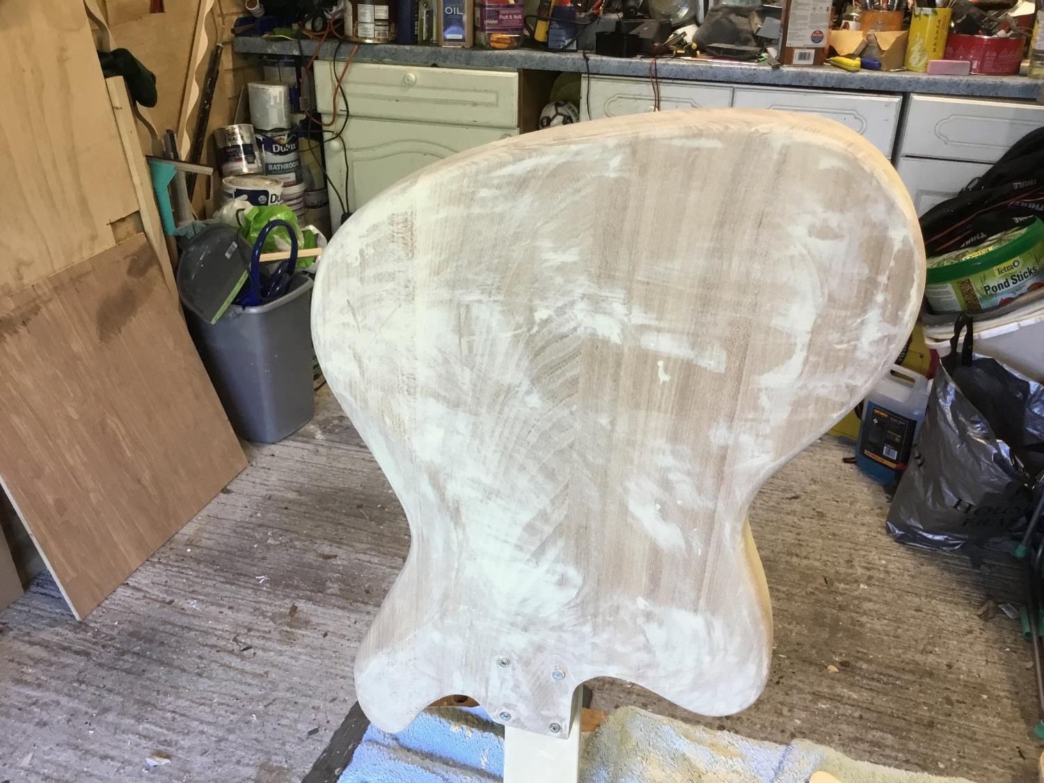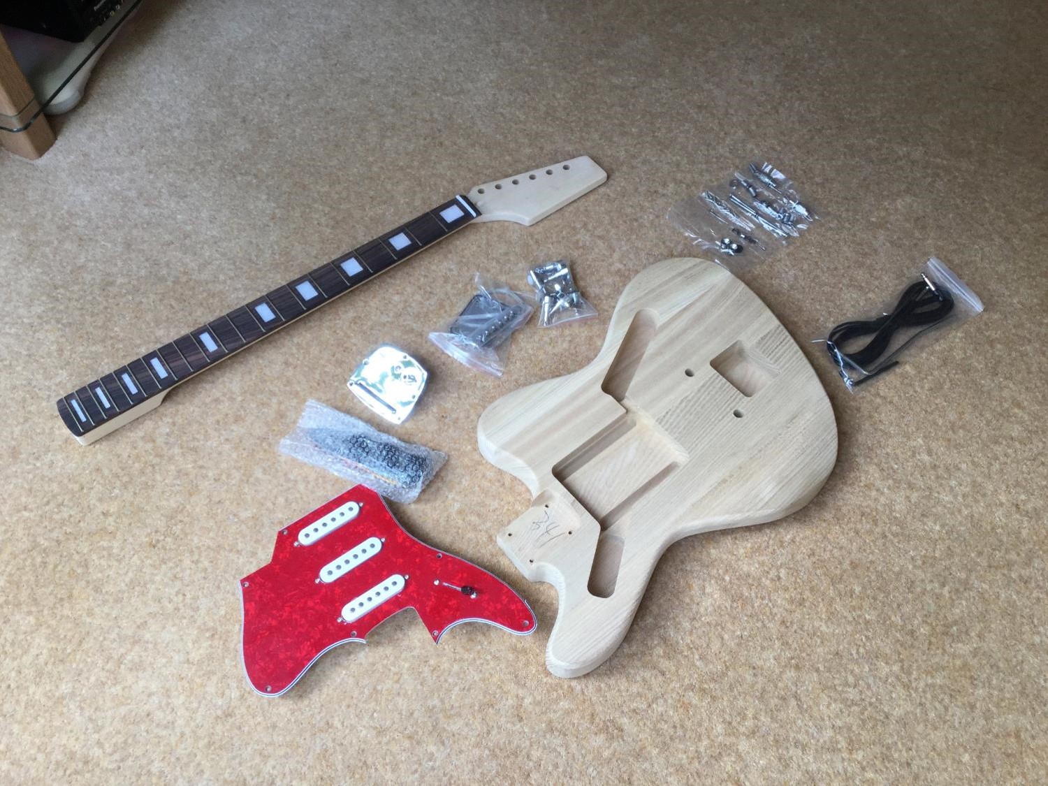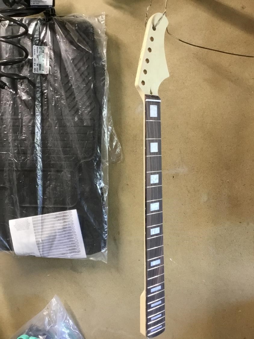 Received my kit today . Everything was delivered as expected and on inspecting the body and neck they appeared well made ready for starting the sanding and finishing . Have made a paddle to attach to the body to keep it steady and avoid damaging the body whilst handing it .