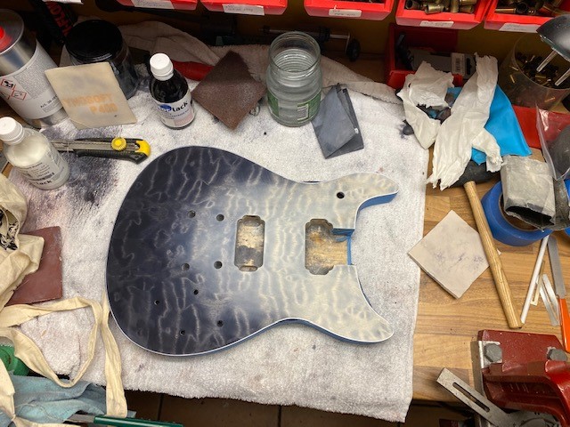 Did some shaping of headstock and put some inlays in head, just to learn. Turned out quite ok in the end