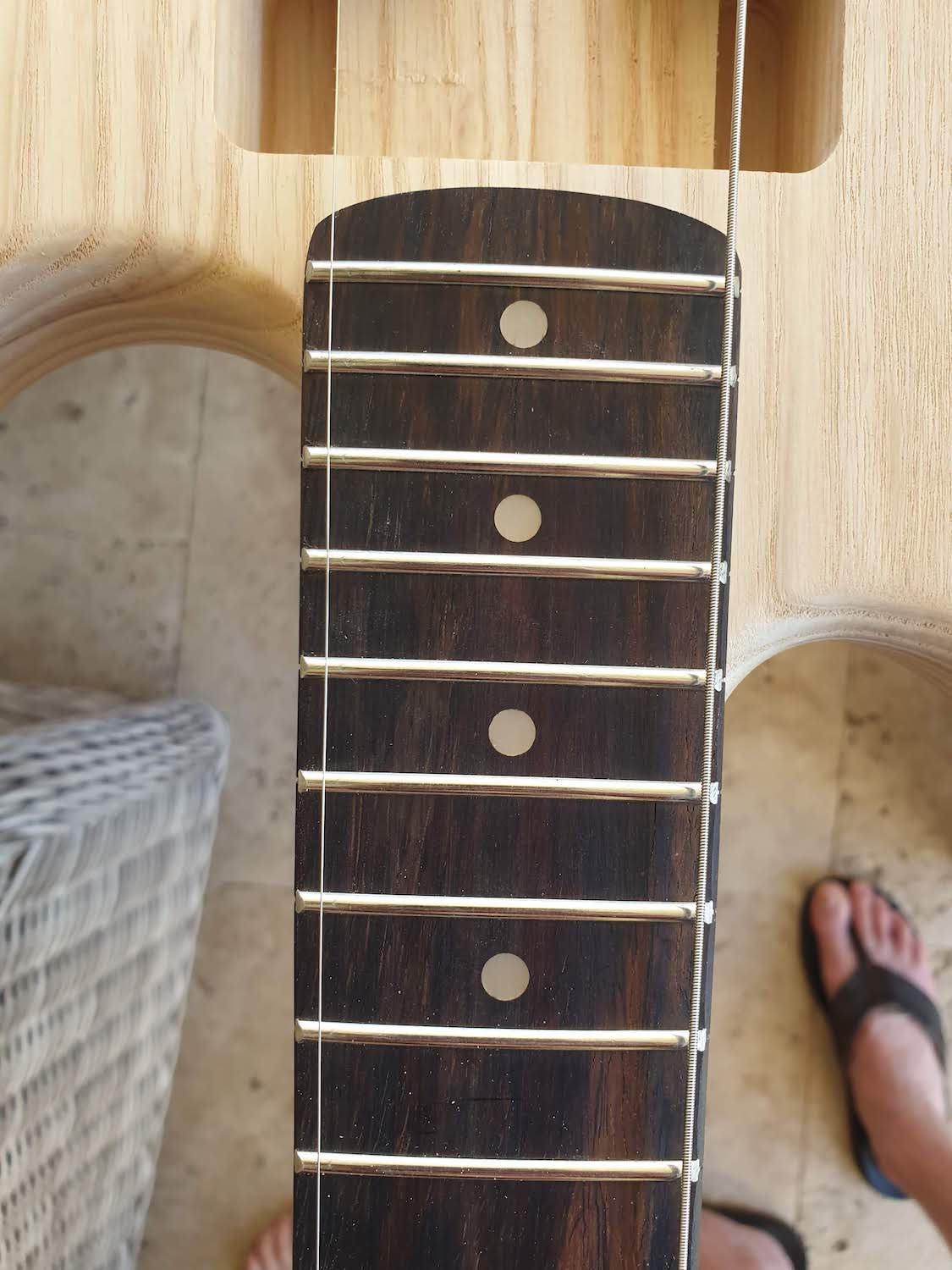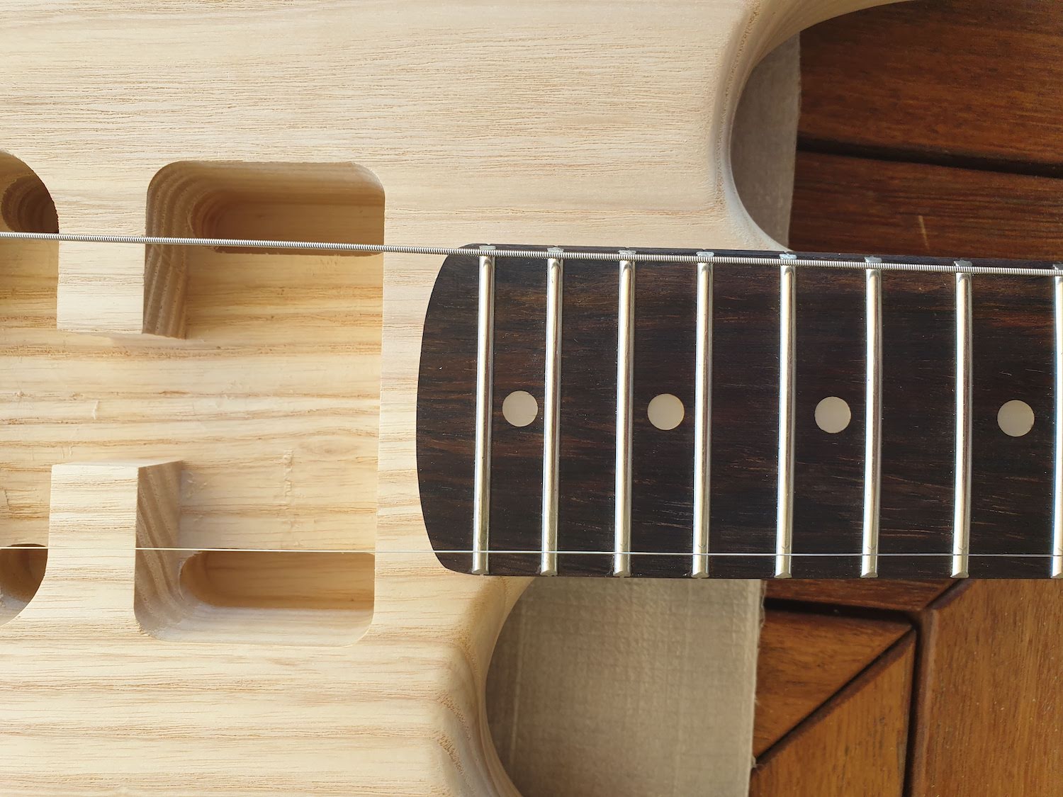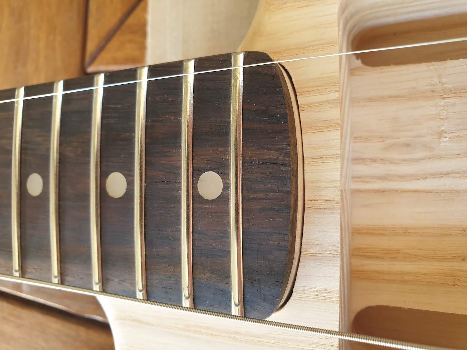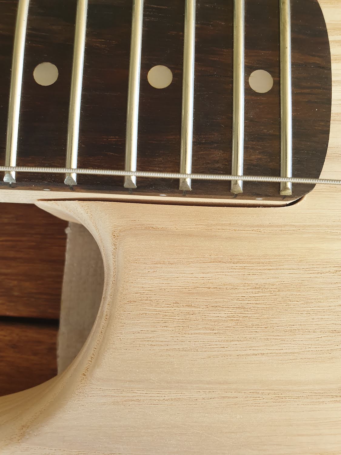Just started work on my DST-1 kit today. I've done my mock build and can see that my neck is out of alignment. I started to sand the pocket on the top side, but as I was progressing I realised that the pocket, heal of the neck and the bridge all have pre-drilled holes.