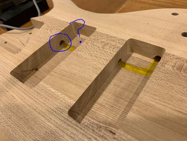 The first photo here is the neck pick up gong through the channel that has been carved out top to bottom. Once I make the right angle to go into the cavity, there is no channel cut out so I think this is where I am bumping up in height a little bit. Should I carve out a small channel here to have the bridge pick up sit better?