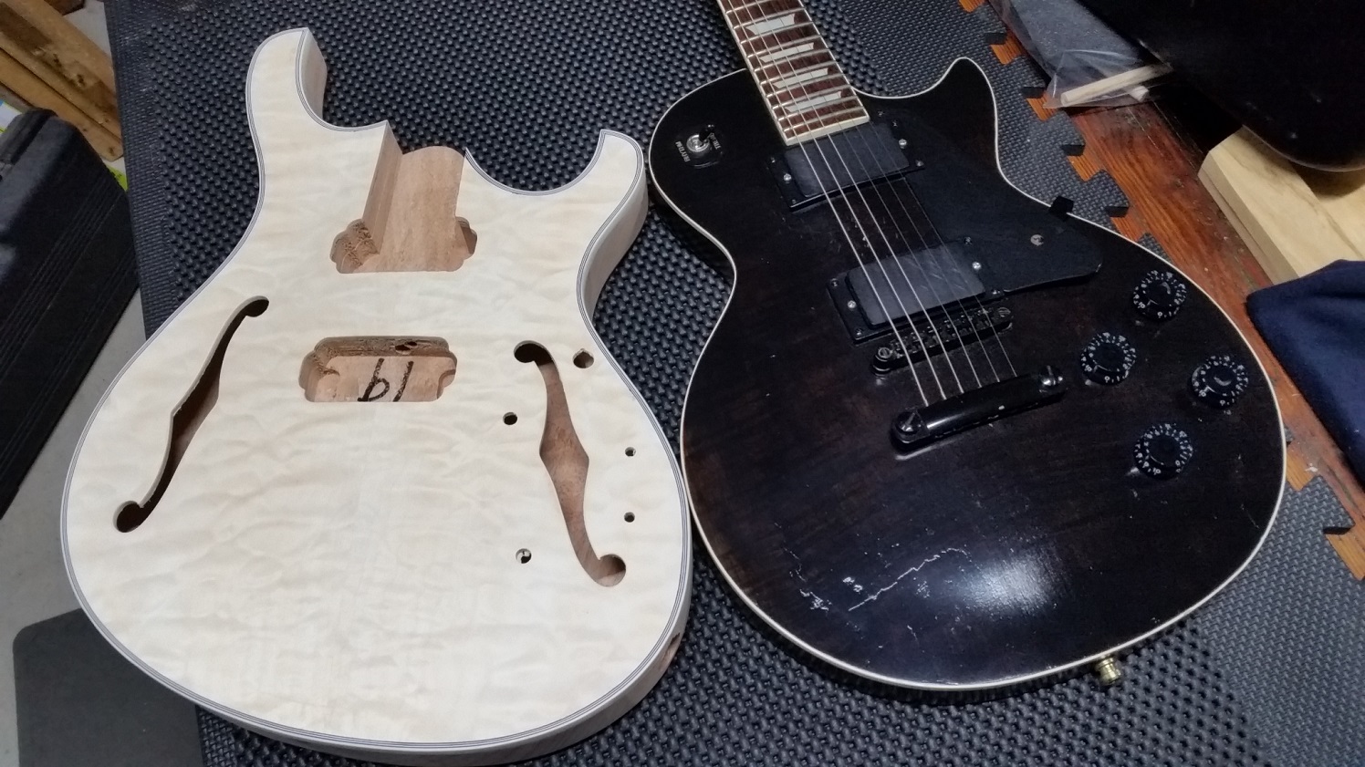 I can't quite figure out the GPR, but I love the offset shape. But that would be a veneer top and binding, AND a set neck, neither of which I have tackled before. Whereas the AIQ is a less intimidating veneer top, and a bolt-on neck.