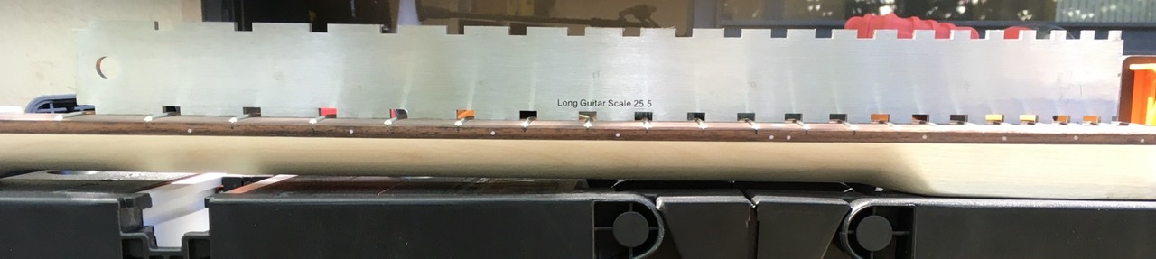 I have the tools I bought from pit bull and using the notched straightedge, the neck seem fairly straight, with no relief. That should change with string tension but I think straight when I’m doing fretwork is best. So about to cut headstock and tape the fretboard so I can start levelling and finishing the frets.