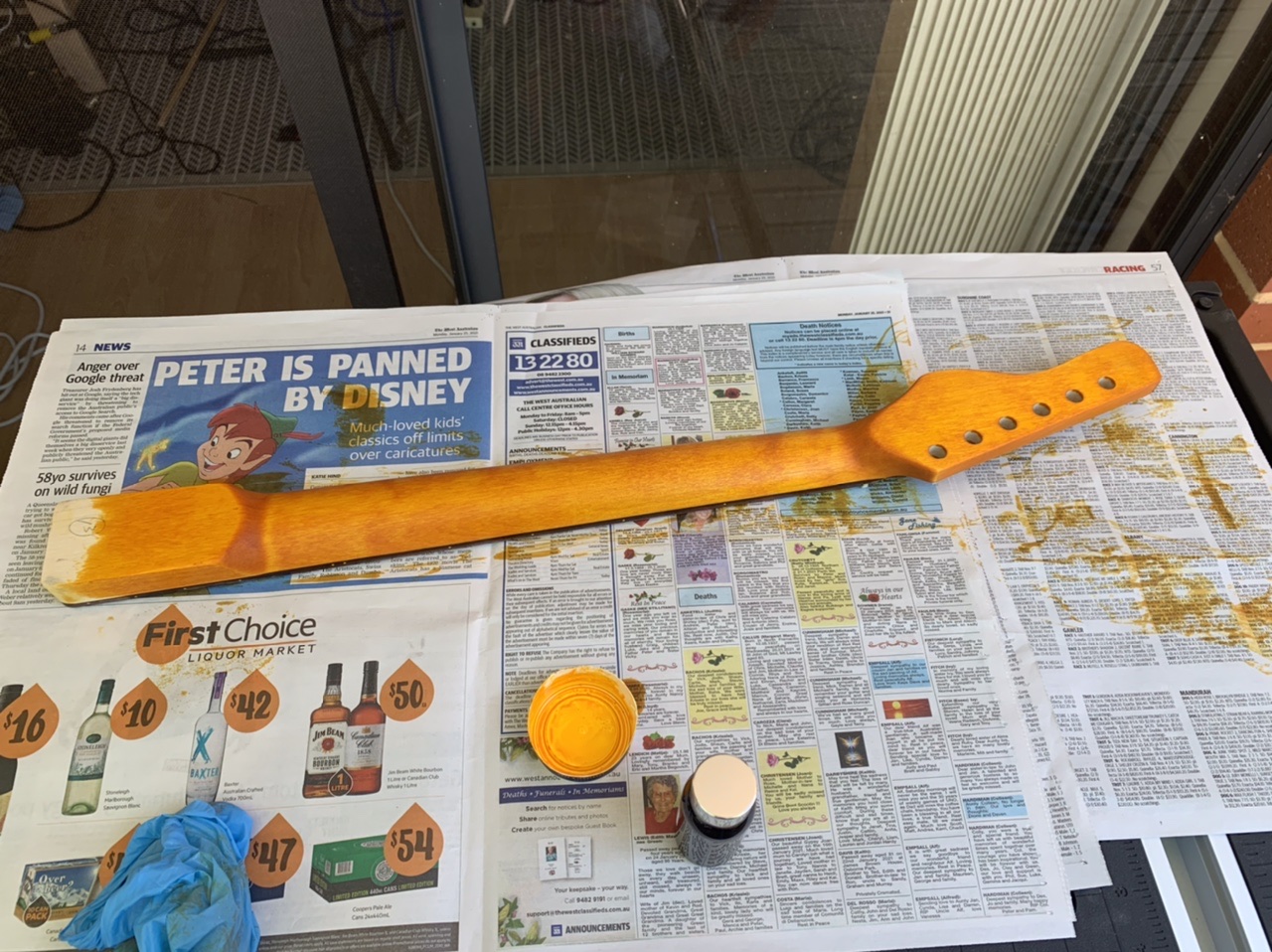 The neck, as I said, is straight. Some small indentations in the end (see photo) which could be, maybe punch marks or something. Not a problem as it will be covered up. 1 minor scratch in the back but sand able.