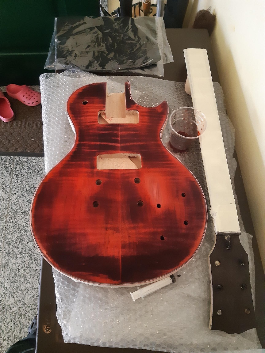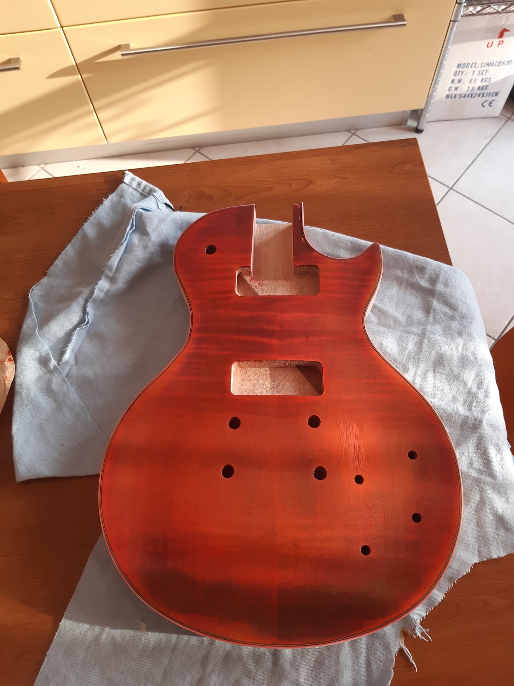 In the weekend i will start with sanding the flamed top of the body, i've no time yesterday to do it
