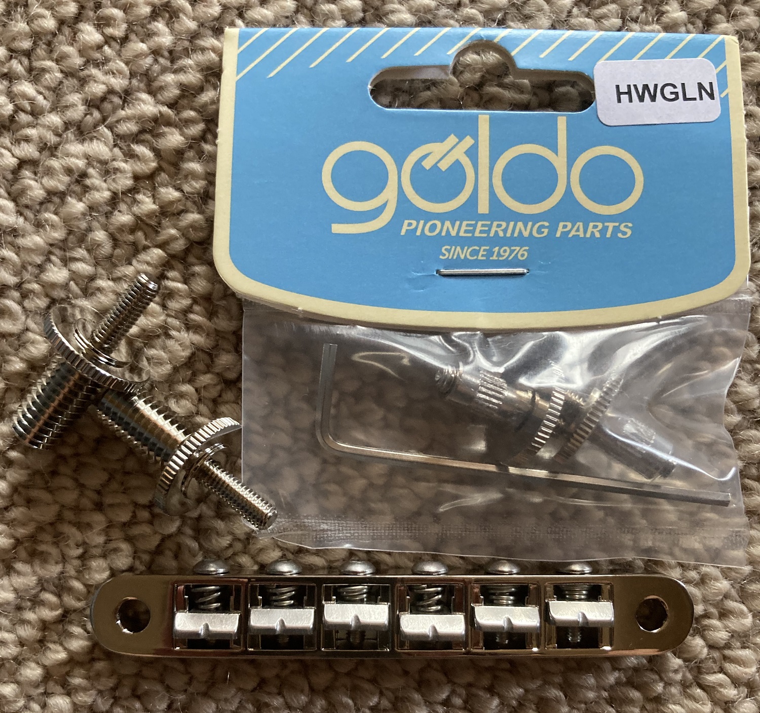 I eventually found this Goldo Lowrider bridge. I needed adapters shown for the smaller bridge pins.