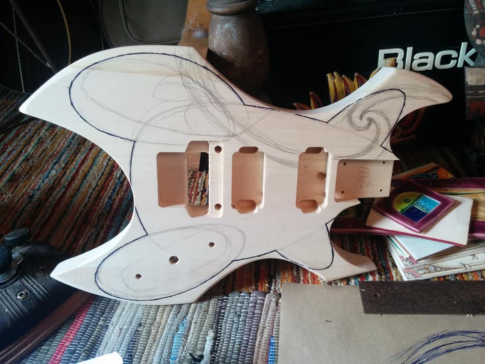 Cheers Simon. There'll be 'arms' added. Two arms, I can't think of a better word sorry, along the top and bottom which'll give me back the guitar shape. They'll be dowelled in. The inspiration is from Noel Crombie, a Split Enz fellow, whom when he was with Phil Judd, Schnell Fenster, carved up a bunch of guitar bodies for the videos they did.Attachment 40328