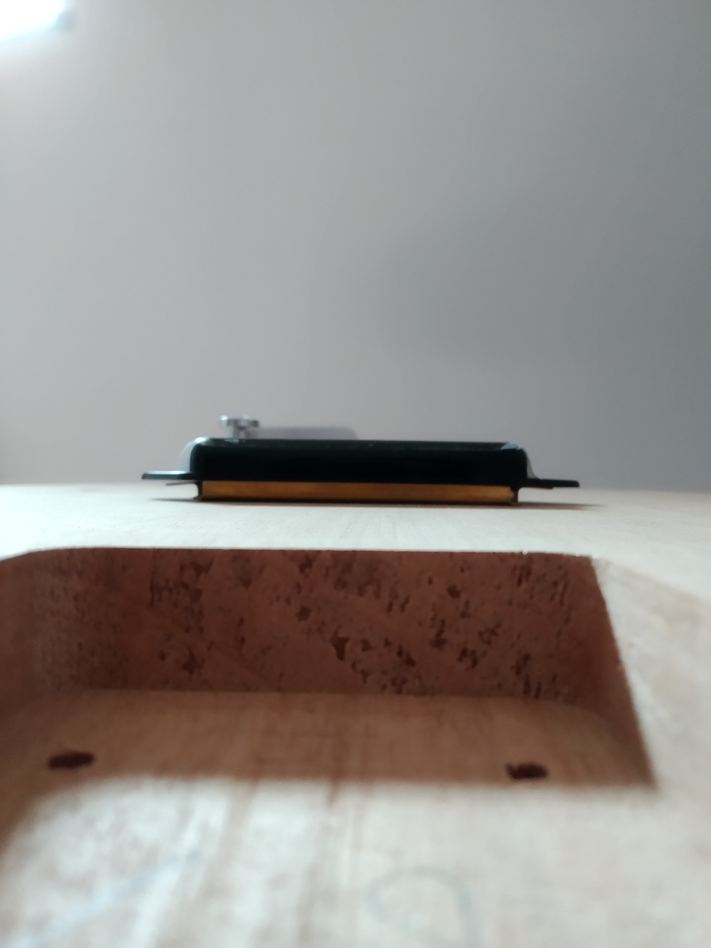 That is a "dog ear" P-90 which is intended to be "flush mounted" (sitting on the top) not recessed into the hole.
