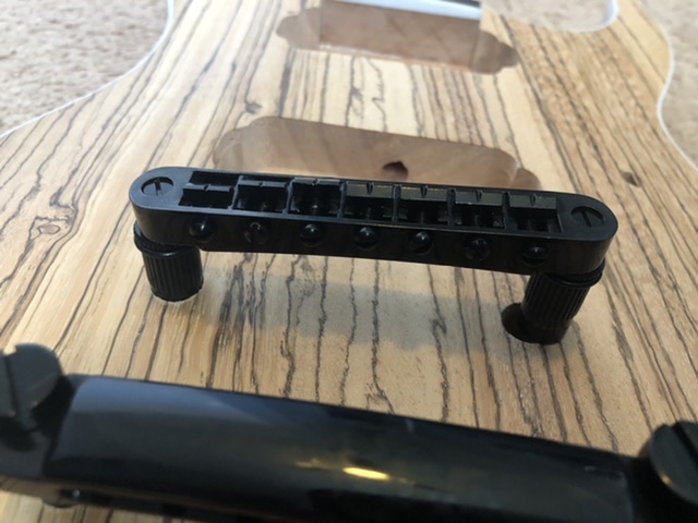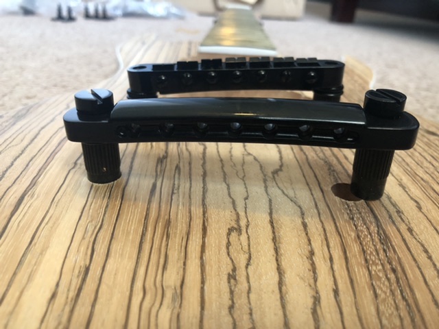 So I unpacked the kit and started dry fitting parts together, and right away I noticed that the pre-drilled holes for the bridge and tailpiece are too close together for the hardware provided. After aligning everything with strings on, it appears both lower holes were mis-drilled, about half a hole off. I can repair it by plugging the hole with a dowel and re-drilling them, but I’m annoyed that I have to. I mean, I don’t work in a guitar factory, but if all I had to do is drill two holes a fixed distance apart, I’m sure I could have done better than this.