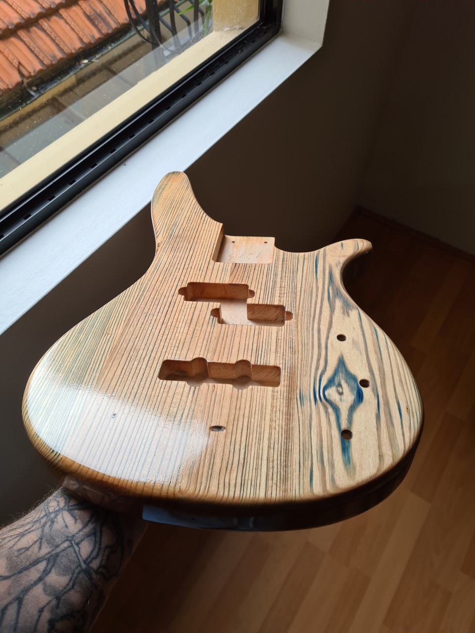 Ultimately I'm not unhappy with the outcome. I was hoping for a much different blue, instead I got a natural colour with blue accents in the grain. It plays and holds tune so I can't really complain.