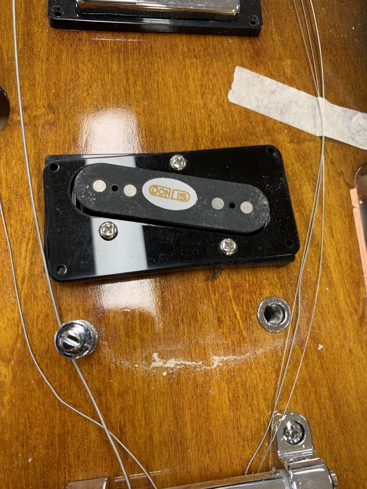 Replaced the bridge bad coil split humbucker and replaced it with genuine single coil. I had to laser cut a conversion ring. Doesn’t look perfect but does the job in the end.