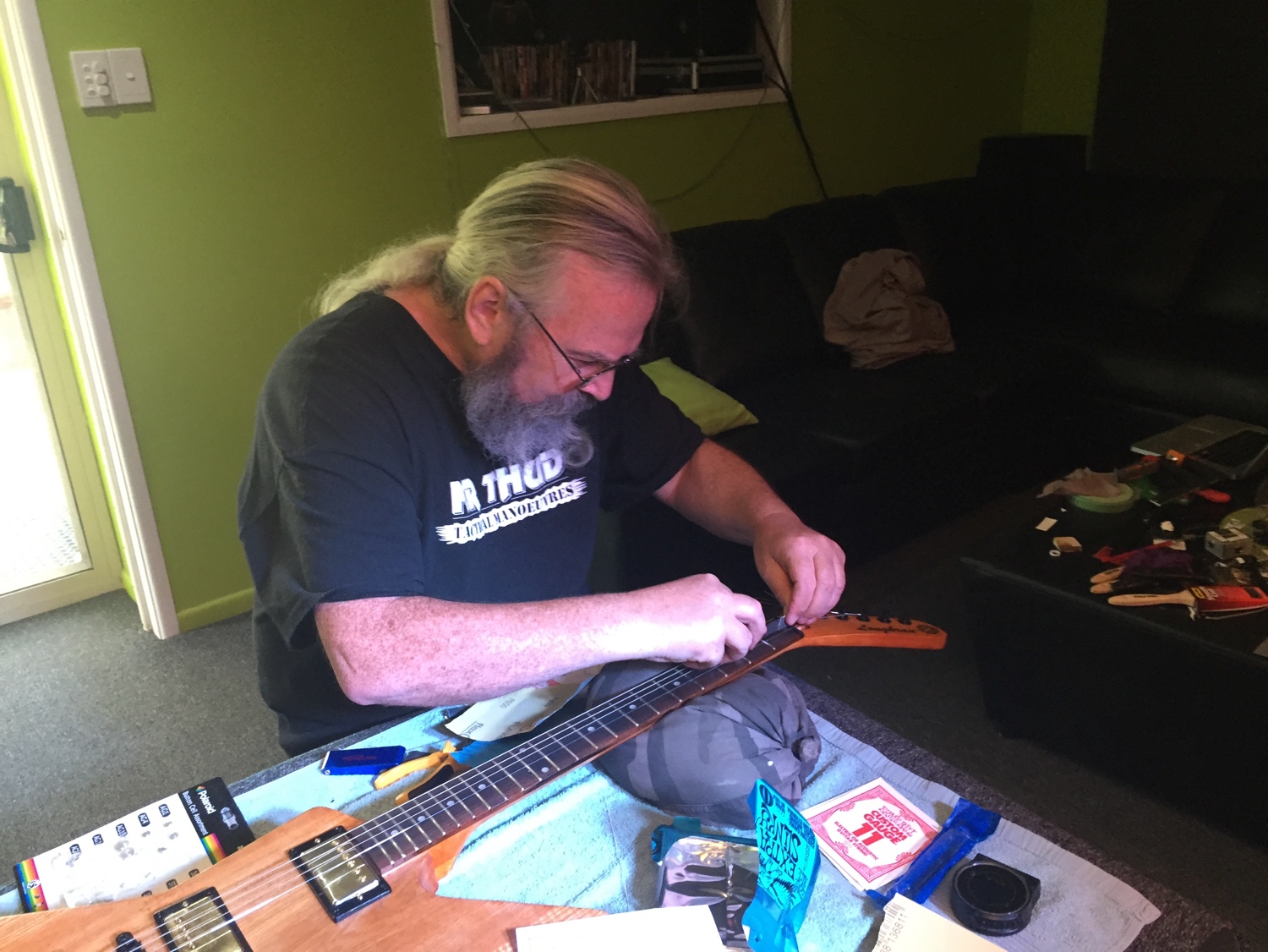 So far.. its been fun, but my optimism about having a recording worthy instrument (low action, no buzzy frets..) is fading. Dad, still reckons its gonna be a success.
