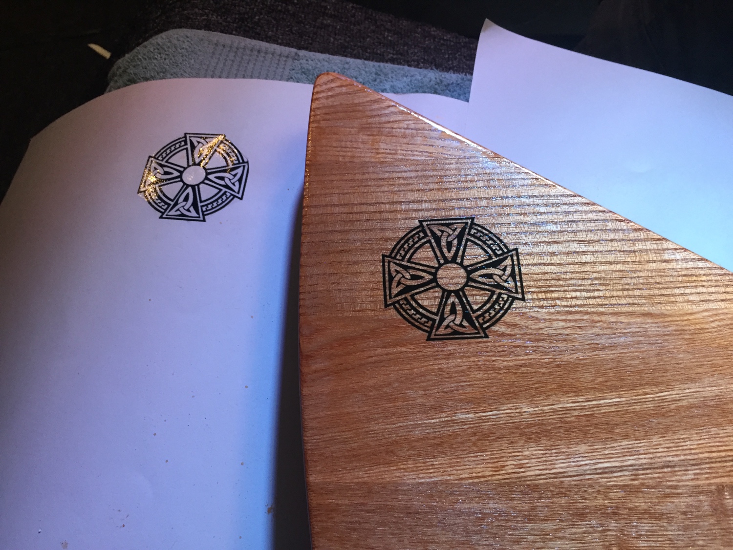 Any tips on when to apply an Inkjet printed decal that has been sprayed with fixative over Bullseye Shellac would be good to hear. Right now the plan is to start that in 3 days time (leaving the neck loads of time to set). We plan to cloth apply a very light coat of Shellac. Sand with 600, 800, 1200 so that the only shellac remaining is in down in the grain. THEN apply the waterslide decal. Then continue with cycles of Shellac and sanding with 800, 1200.