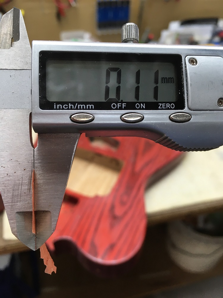 I think your decimal point should be moved one step to the right as my paper measures roughly 0.1mm and most digital calipers only read to the second decimal point.