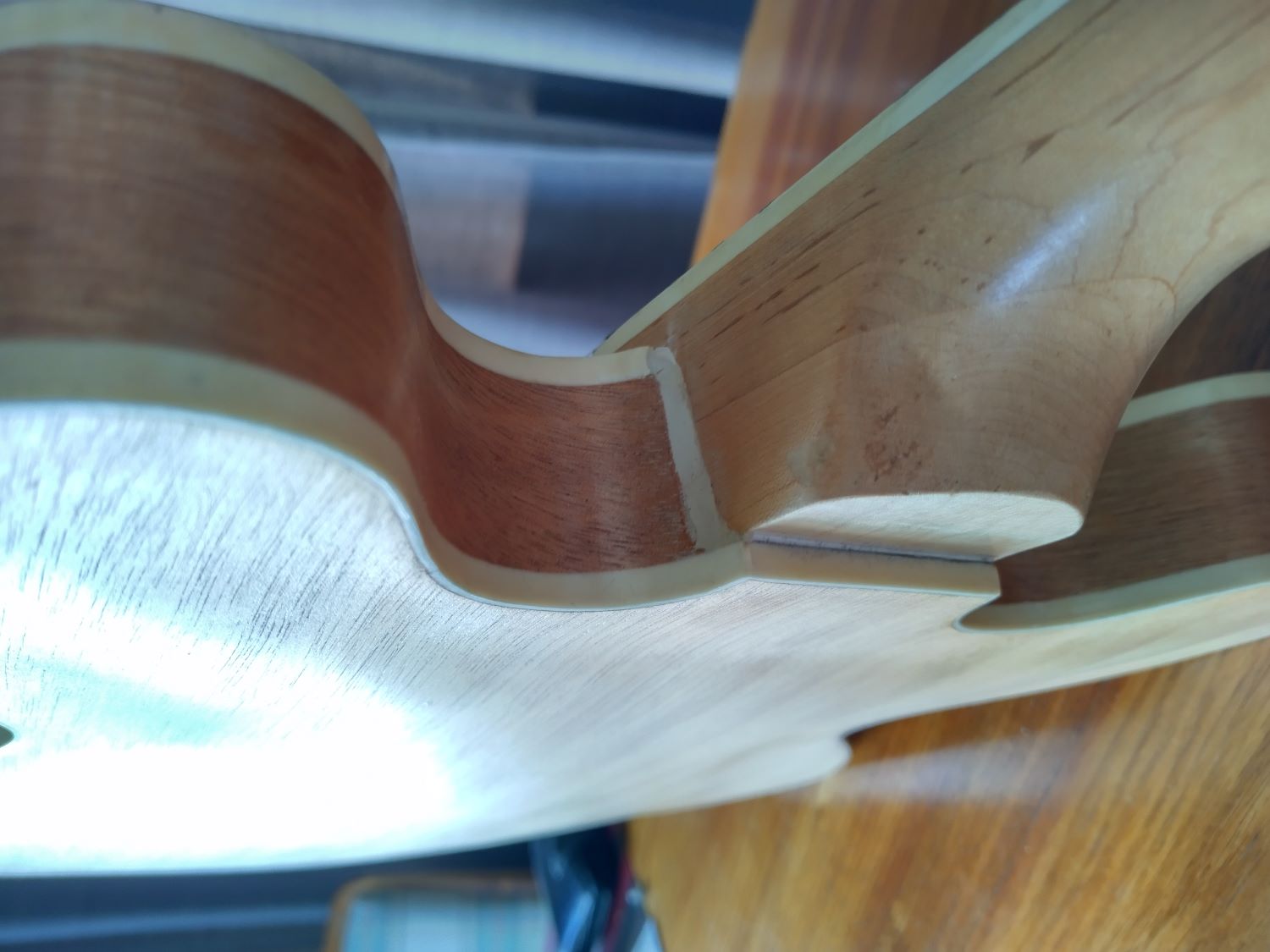 I'm not sure how easy it would be to put in binding - but I have never used binding. That would look neater - as long you can match the colour! Maybe a filler that matches the colour of the body wood would make it less obvious.
