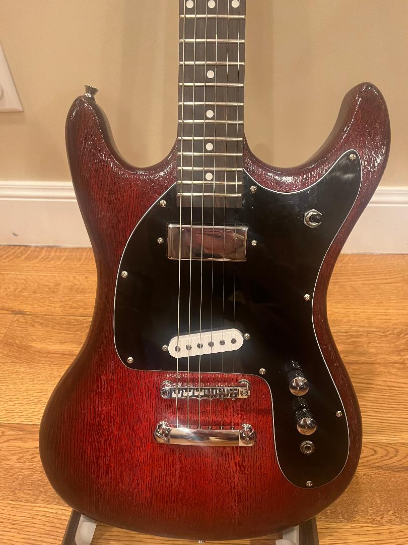 Considering the artistry that shows up on this thread, I don't know if this qualifies as a GOTM contender. But I've gotten a lot of complements on it, so it might as well be seen. Mostly stock PBG, with D'Addario tuners. Left a very slight grain in the ash body, which catches the light an gives it a sparkle.