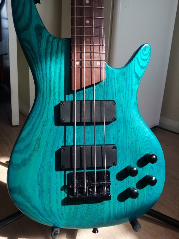 My IB4 bass - I started this build about 2 months ago - the stain/dye is Liberron peacock Blue and I did the fretboard in Liberron Victorian mahogany - all the hardware is standard and new CTS pots and switchcraft jack is ordered. I didnt want to spend all that time and effort and look at the nasty Chinese pots. But thats part of the fun. The bass sounds amazing - I have a 32 year old jazz bass which doesnt sound as good. Plays nicely, easy action and looks great.