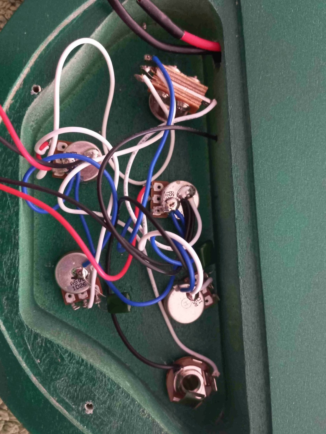 I recently bought an SG style DIY kit and finished it a few days ago. It was prewired with two vols, two tones and a three position selector switch. I noticed that while both pickups worked only one was working in the centre position. A bit more investigation left me totally confused. With the selector switch in the centre position only one pickup is working (say the front). If I then turn both volumes to zero and turn the front volume up again nothing happens but the rear pickup is now working. I can go backward and forwards between the two pickups like this, but never both together 🙃