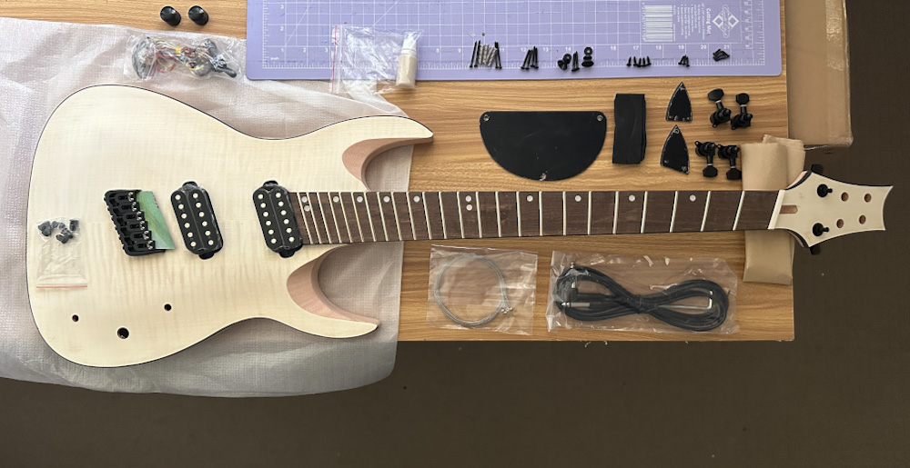 • until I unboxed it I didn't realise but the routing of the PUPs and neck lies above the centreline of the body(much closer to the upper horn) This takes some getting used to but I'm ok with it. I'm assuming the 7string version has a more centred layout and this is a variation of that template.