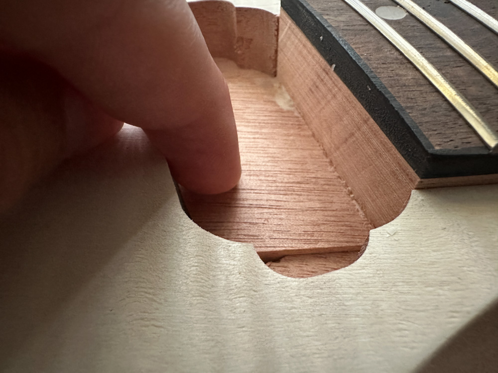 • the neck pocket seems way too loose. It almost appears as if the routing was done slightly off because of the arch top. I can fit a 0.8mm pick down one side of the neck. I am seeking advice on how to deal with this(or if it can even be dealt with?)