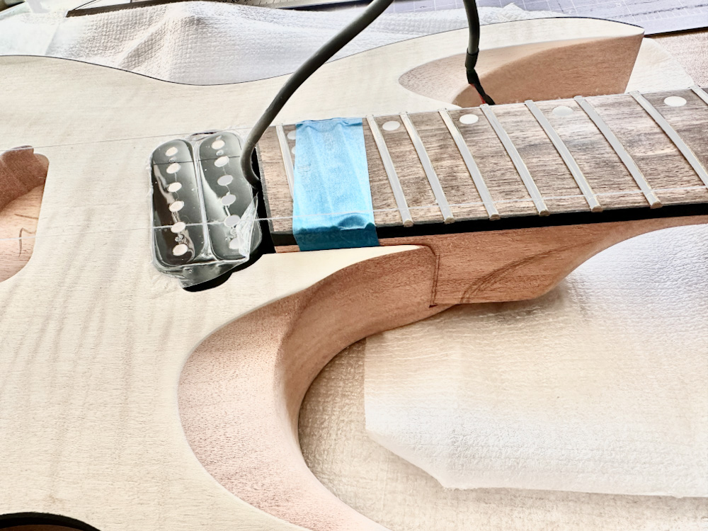 This is not optional so I'm toying with ideas on how to fill that gap if anyone has any input on this? I'm thinking it should be something that's an extension of the neck, or something that's an extension of the pickup itself.( there's no option the have another piece of flame maple inserted in there-I'm not ready to consider deleting the flame maple finish yet)