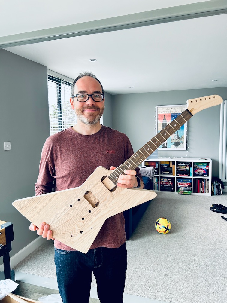 I did think about hydro-dripping the body but, now that I've got it, I think a natural finish might be better (similar to my dream guitar when I was a kid - a Hamer Diablo...). Lots of other decisions to make — e.g. should I replace the pickups with something from Bare Knuckle or EMG — so looking forward to getting stuck in.