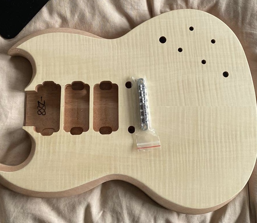 I think the two models are based on different sg’s I went and checked my Gibson and it has a cover above the pickup surround. So if the guitar can be as Trevor indicated setup for scale length there may be a cover in the kit parts or wouldn’t be hard to knock one up.