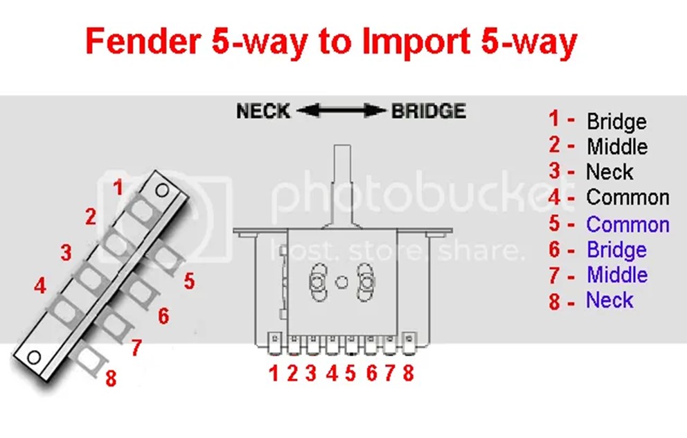 2. I'm using a 5-way import switch, how would the connection to the switch be then?