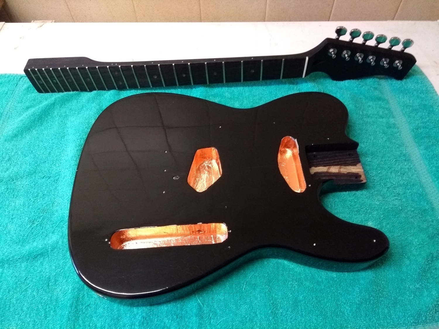 For shielding paint, I use Rustins G Shield. https://northwestguitars.co.uk/produ...ng-paint-125ml. One tin goes a long way. It's often more convenient for shielding cavities, especially ones for body-mounted pickups. Much better aesthetically having black cavities than copper-lined ones where you can see the copper IMO.