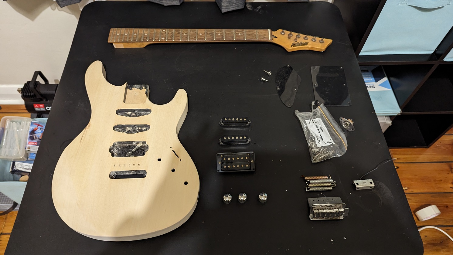 Allow me to introduce my Ashton AG-131. Or at least, what's left of it. Purchased many years ago off that marketplace of fine instruments - Gumtree - for the costly sum of $70, I have decided it serves a better purpose to be a test bed for learning the skills of guitar refinishing/assembly.