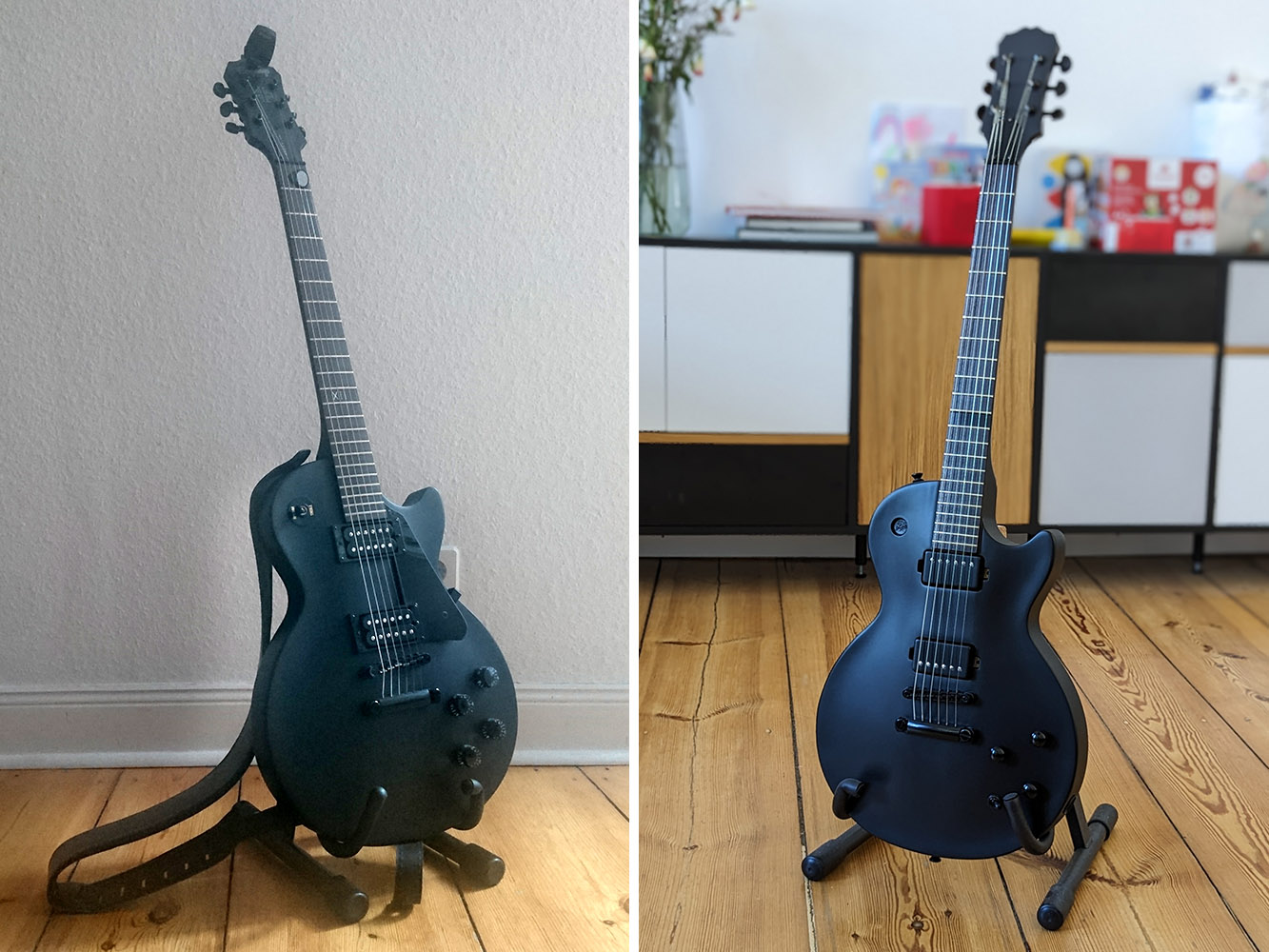 This is not a build, but some modification on my first ever bought guitar (2017). An Epiphone Les Paul Gothic. I really like the shape and the feeling of this instrument, so I wanted to optimize and individualize it. I already made some small visual changes before, like changing the pot knobs and removing the pickguard. But what I dreamed of for this guitar was changing the humbucker rings to direct to wood mounting.