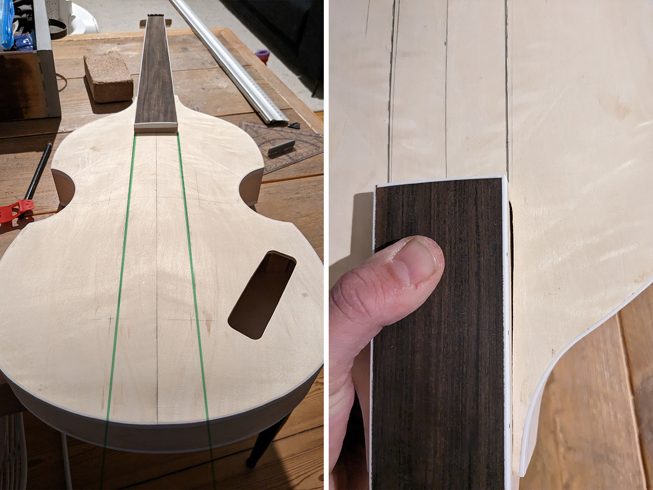 The kit is fine beside the neck/neckpocket...the neck aligment to the body is not centered when you put the neck into the pocket...It is going about 5 mm to the upper edge of the body, so you dont get a straight line following the neckline to the centre of the body...Not sure how to fix it with a hollow body :) that might become difficult...I suppose I have to sand quiet a lot of the necksides to get the right angle...and then fix it with glue and veneer to keep it in the right shape...lets see :)