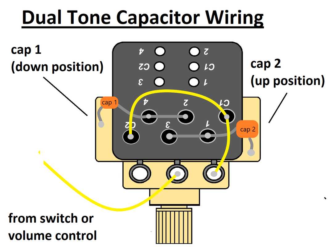 I also understand that if I put a resistor across one of the positions of a dual 500k pot I could achieve the same two "tones" (but apparently this might have problems when tapering the volume - which becomes "on /off" - I assume this is when an audio pot is used - I wonder if it's a problem if a linear pot is used?) As per this Picture (although I've no idea where to position this on a dual pot):